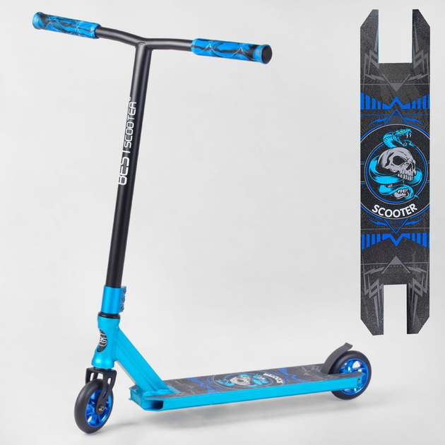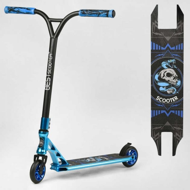 Самокат трюковий Best Scooter Синій НІС-система, ПЕГІ, алюмінієвий диск і дека, Анодована фарба, PU колеса, ширина керма – 5