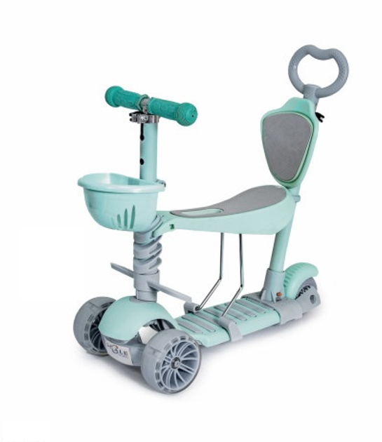Дитячий триколісний самокат Scooter Smart 5 в 1 з сидінням, батьківською ручкою та колесами, що світяться, М'ятний