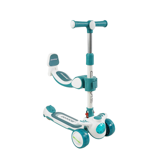 Складаний триколісний самокат Skyper 2 в 1 з сидінням підсвічуванням та музикою Бірюзовий
