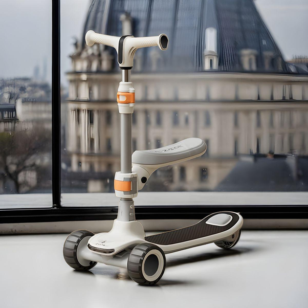Дитячий триколісний самокат Scooter зі складною конструкцією та підсвіткою, Білий