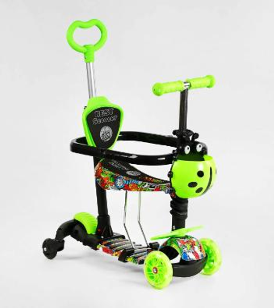 Самокат 5в1 на 4 колеса з бортиками зелений LS-40203 Best Scooter PU колеса зі світлом, в коробці