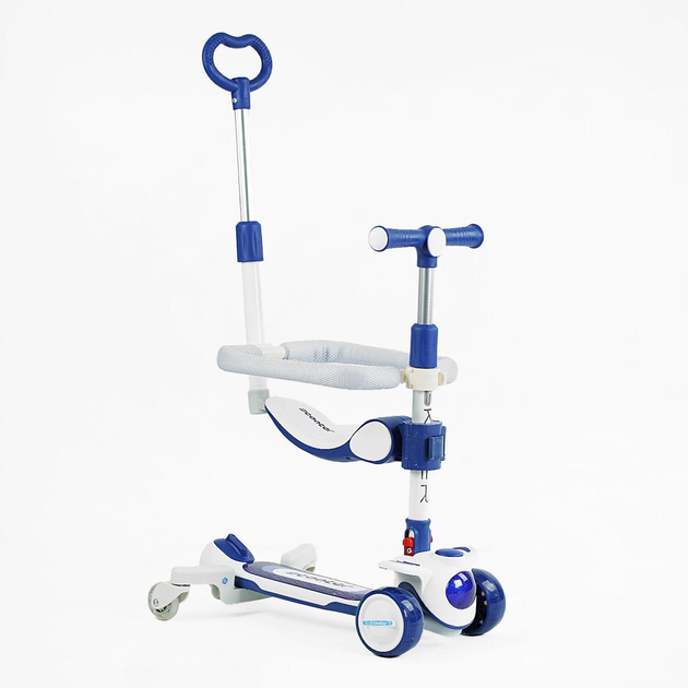 Дитячий самокат 5в1 Skyper LN-9730. 3 PU колеса зі світлом, музика, та підсвічування платформи, дод. колеса, бампер