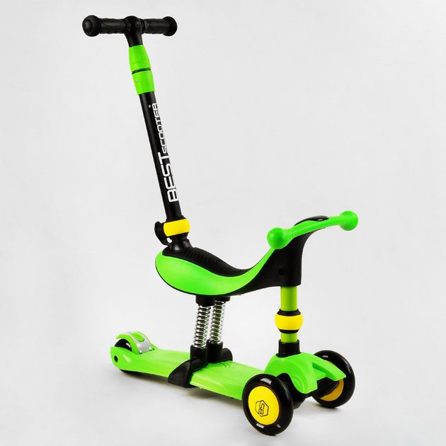 Самокат-велобіг 3в1 Best Scooter колеса PU зі світлом, сидіння, батьківська ручка. Green (106696)