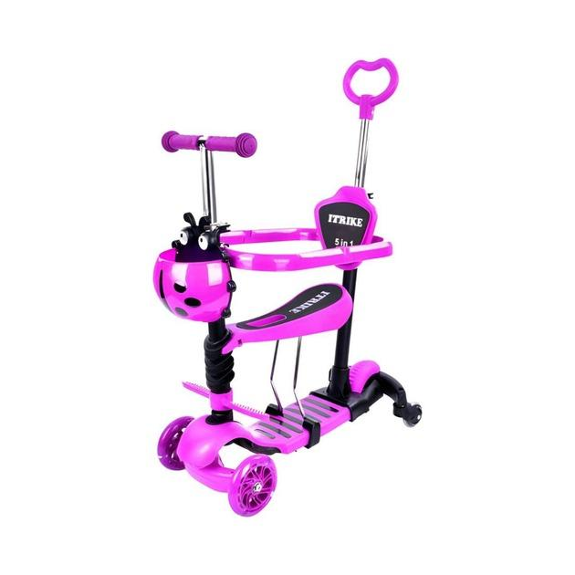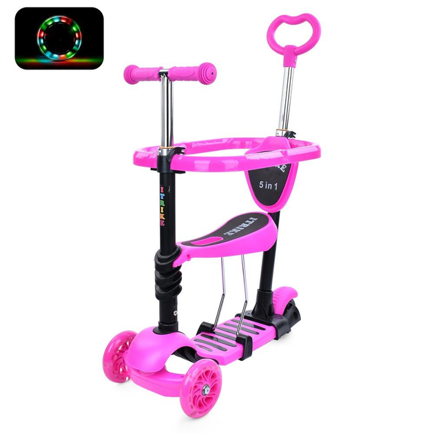Самокат JR 3-101-P, 5 в 1, рожевий, бампер, додаткові коліщатка