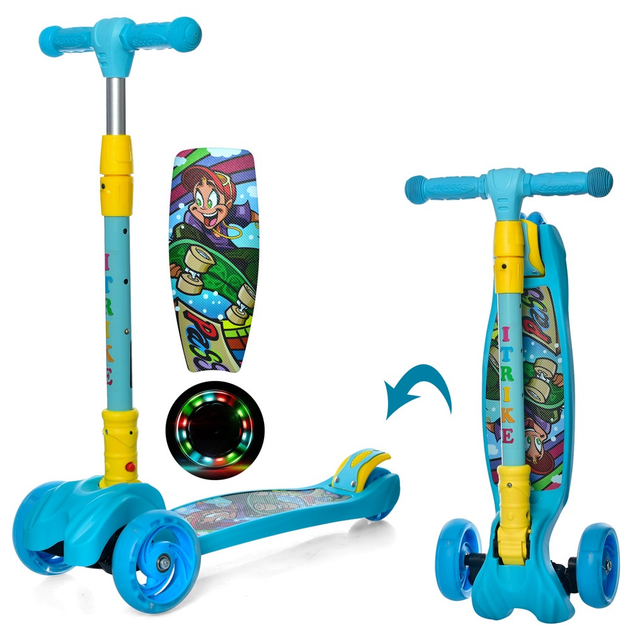Самокат JR 3-118, 5 в 1, синій, метал + пластик, музика, світло, додаткові колеса, батьківська ручка