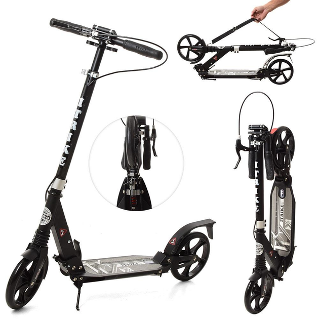 Самокат дорослий міський iTrike Скутер ручне гальмо Чорний