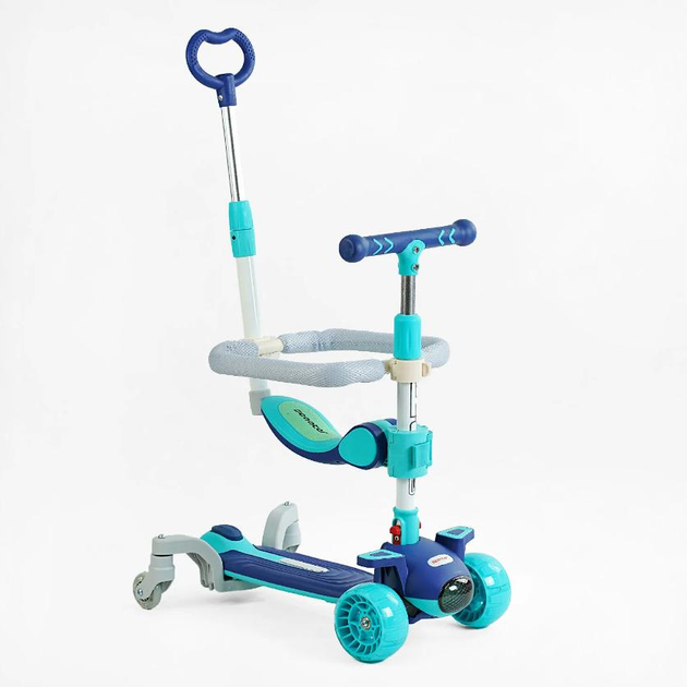Триколісний самокат з ручкою 5в1 "Skyper" Беговел Каталка музика, підсвічування платформи, бампер, J-04505, блакитний