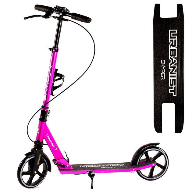 Самокат двоколісний (колеса PU 200мм, 1 амортизатор, ручне гальмо, підстаканник) Skyper SY-09588 Малиновий