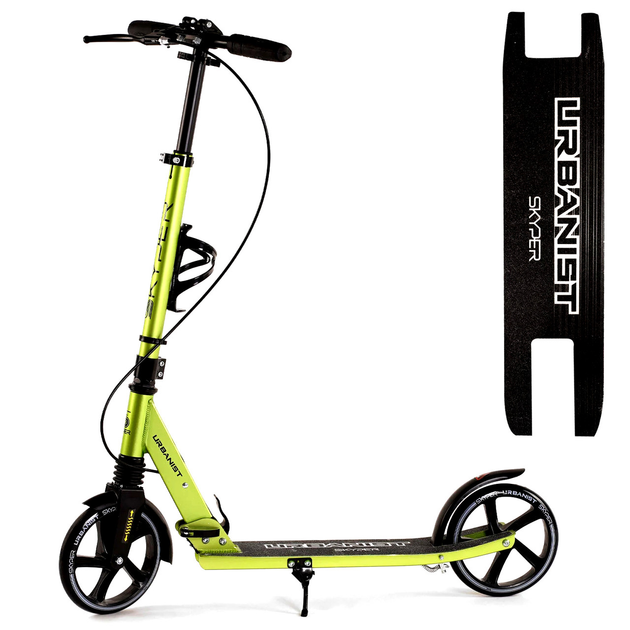 Самокат двоколісний (колеса PU 200мм, 1 амортизатор, ручне гальмо, підстаканник) Skyper SY-07856 Зелений