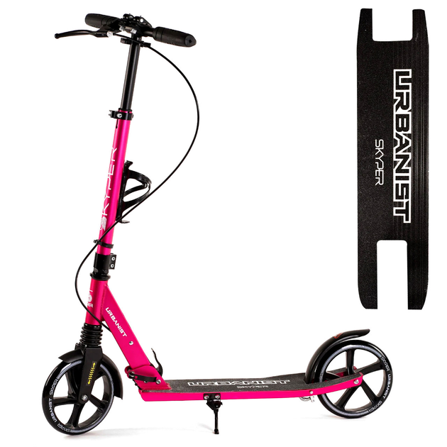 Самокат двоколісний (колеса PU 200мм, 1 амортизатор, ручне гальмо, підстаканник) Skyper SY-09588 Малиновий