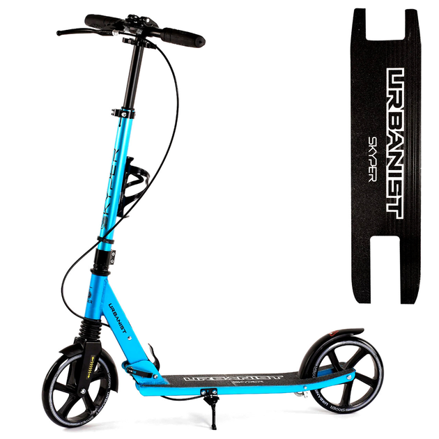 Самокат двоколісний (колеса PU 200мм, 1 амортизатор, ручне гальмо, підсклянник) Skyper SY-05112 Блакитний