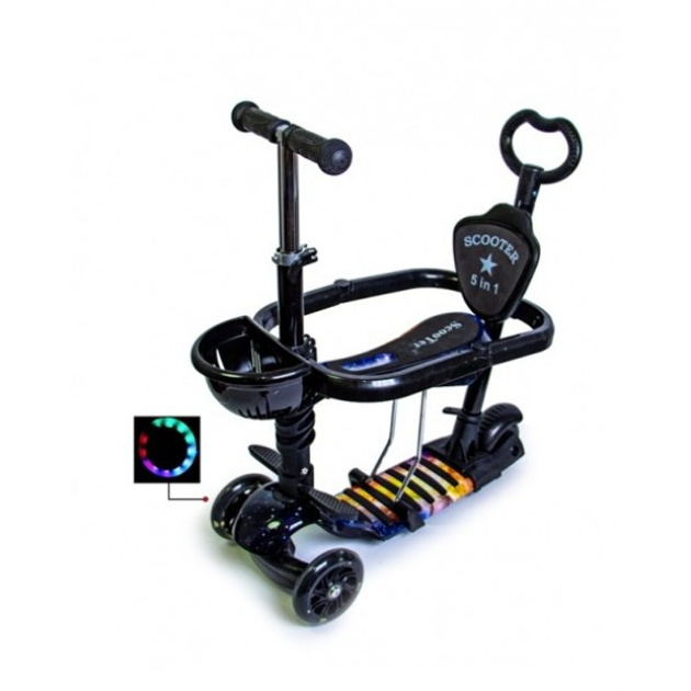 Дитячий самокат триколісний 5 в 1 з батьківською ручкою Сонечко Чорний