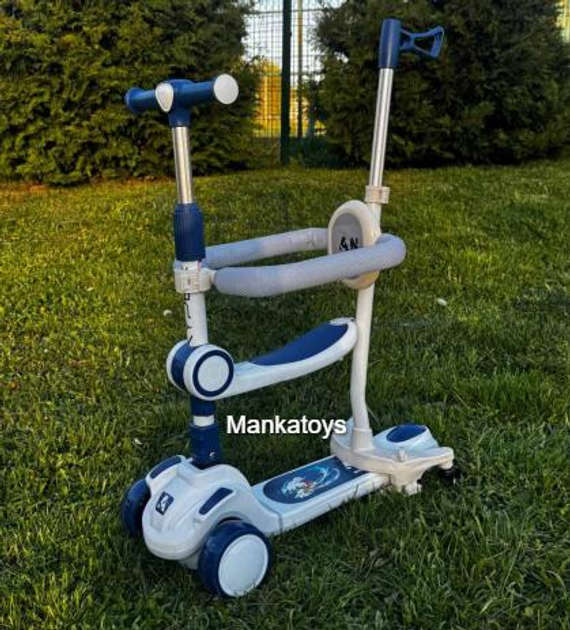 Самокат триколісний 5в1 синій з бортиками та додатковими колесами 5в1 "Skyper" GH-51784