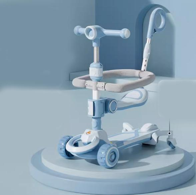 Дитячий самокат - трансформер 6 в 1 з бортиком підсвічуванням коліс та деки BAQ музика бічні колеса синій