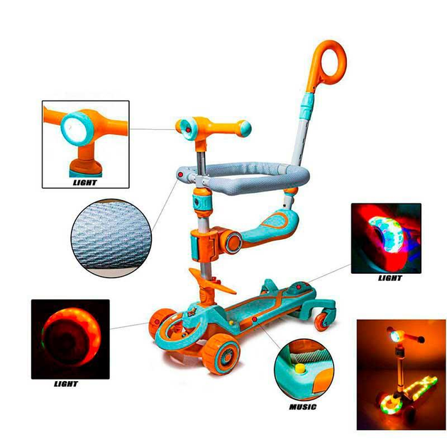 Самокат Smart 5 в 1 Оrange з підсвічуванням з музикою з бортиком 49336349