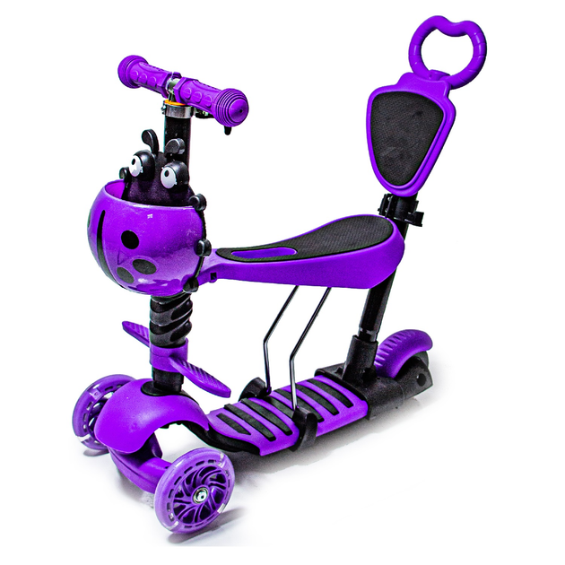 Дитячий самокат Scooter 5in1 з кошиком "Божа корівка" Фіолетовий