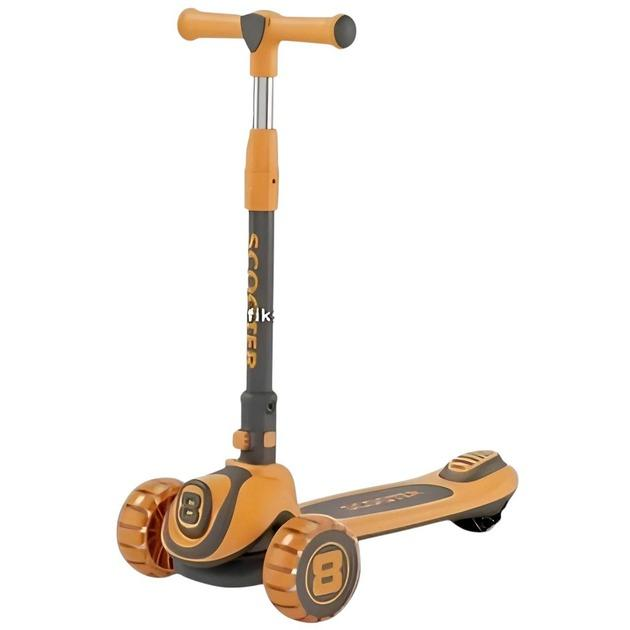 Дитячий самокат JR3-136-Y зі світлом, музикою та регульованим кермом, помаранчевого кольору