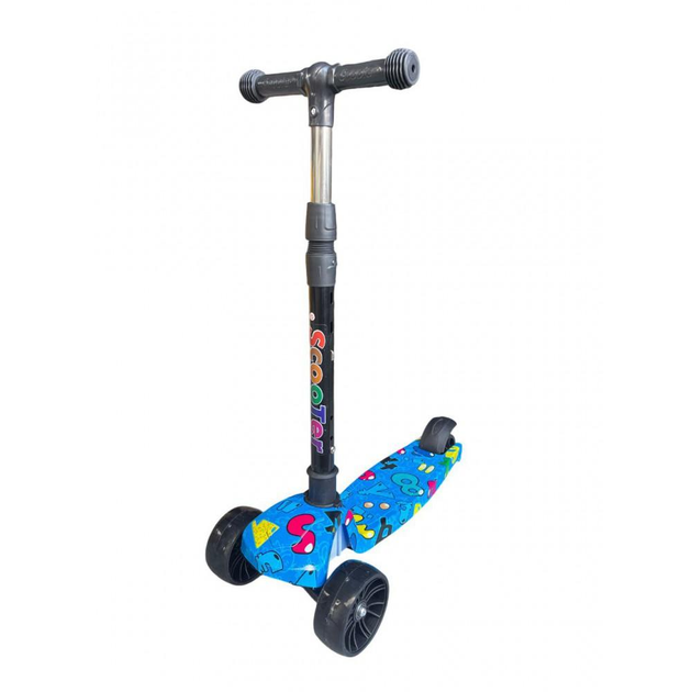 Дитячий міський самокат Adbor 216 Scooter. Триколісний самокат, колір синій із принтом