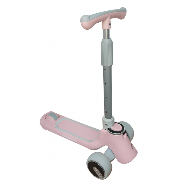 Дитячий трьохколісний самокат із сидінням та регульованою ручкою, рожевий
