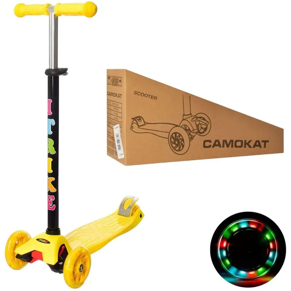 Самокат дитячий iTrike з підсвічуванням 30х13х75-84 см Жовтий 000222680