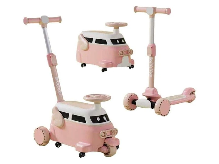 Самокат-толкар Maraton 3in1 809 Pink, візок-толокар-самокат, світло, колеса ПУ, батьківська ручка-кермо.