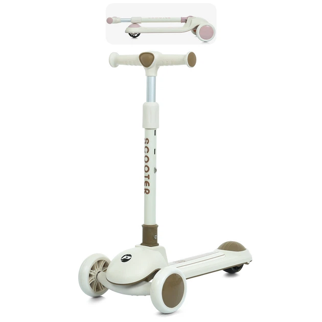 Самокат JR3-126-BRN Mini, метал + пластик, 3 колеса PU, 2пер120 мм, день 90 мм,керморег., компуз., светло,бат