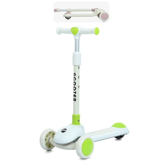 Дитячий самокат Bambi із батьківською ручкою зелений самокат із колесами PU зі світлом для дітей від 3 років (555104)