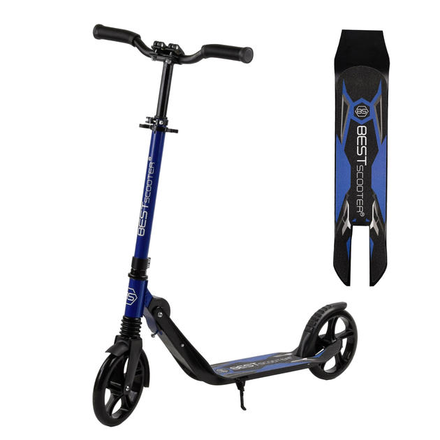 Самокат двоколісний з великими колесами і ручним амортизатором Best Scooter Чорний з синім