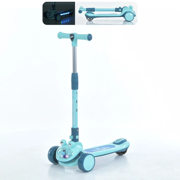 Самокат триколісний, світло, музика, підніжка, колеса ПУ, блакитний (JR3-134-BL)