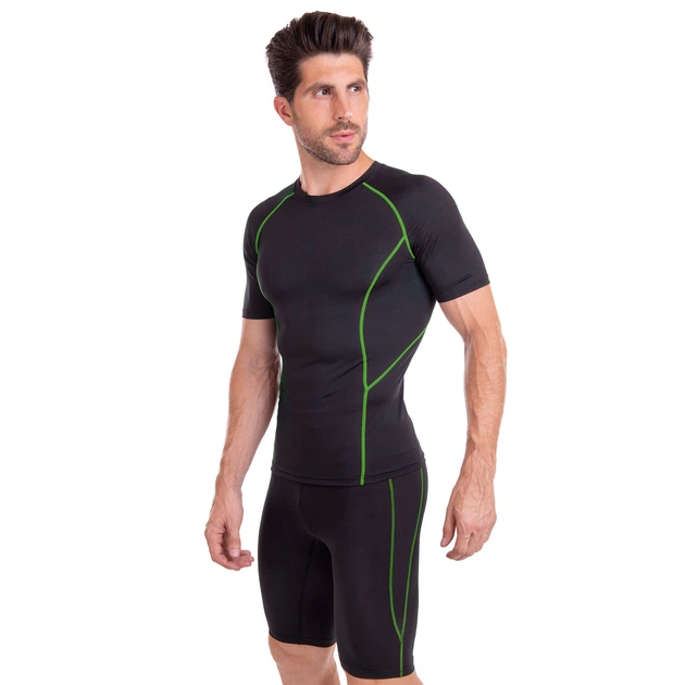 Костюм компресійний чоловічий футболка з коротким рукавом та шорти LIDONG LD-1102-LD-1501 (поліестер, лайкра, L, Чорний-сала