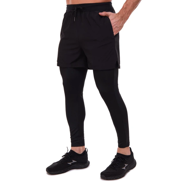 Компресійні штани тайтси із шортами розмір XL 175-190 см поліестер еластан 2в1 JASON чорні HK-2208