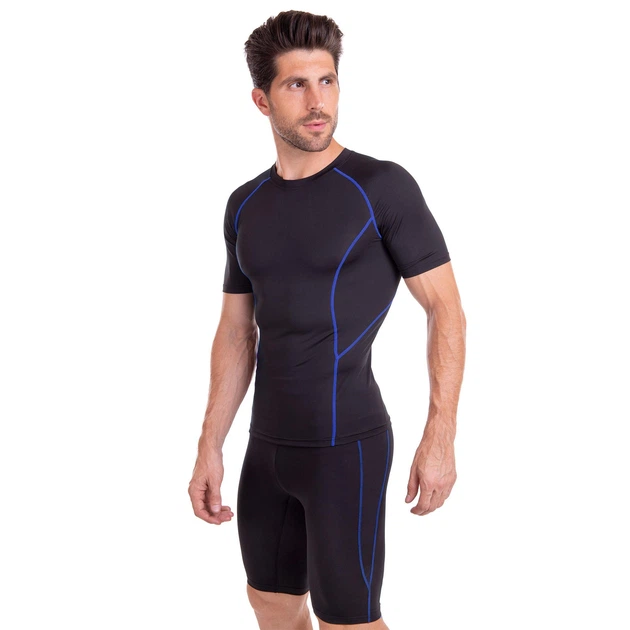 Костюм компресійний чоловічий футболка з коротким рукавом та шорти LIDONG LD-1102-LD-1501 XL чорний-синій