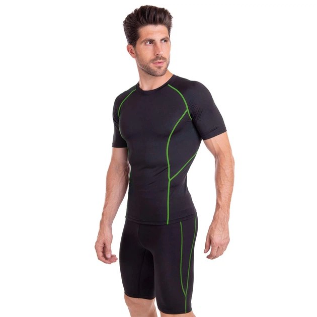 Костюм компресійний чоловічий футболка з коротким рукавом та шорти LIDONG LD-1102-LD-1501 XL чорний-салатовий