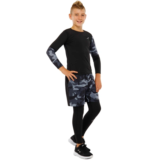 Костюм компресійний дитячий рашгард лонгслів штани та шорти MASUKA BO-3613 розмір XL Чорний-сірий