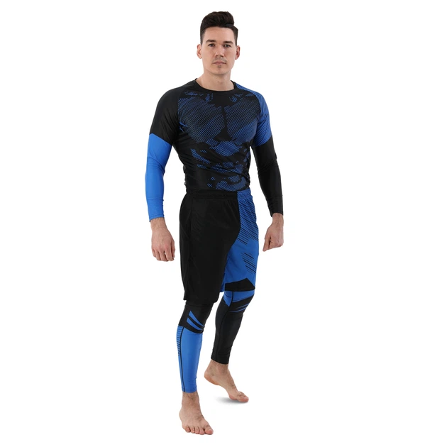 Костюм компресійний чоловічий розмір M 160-175 см Поліестер Спандекс рашгард лонгслів штани та шорти Domino чорно-синій TC21