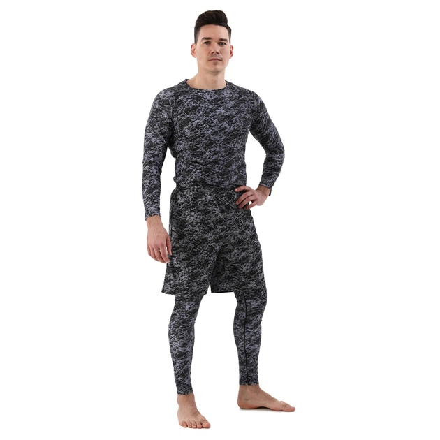 Костюм компресійний чоловічий розмір M 160-175 см Поліестер Спандекс рашгард лонгслів штани та шорти Domino чорно-білий TC21