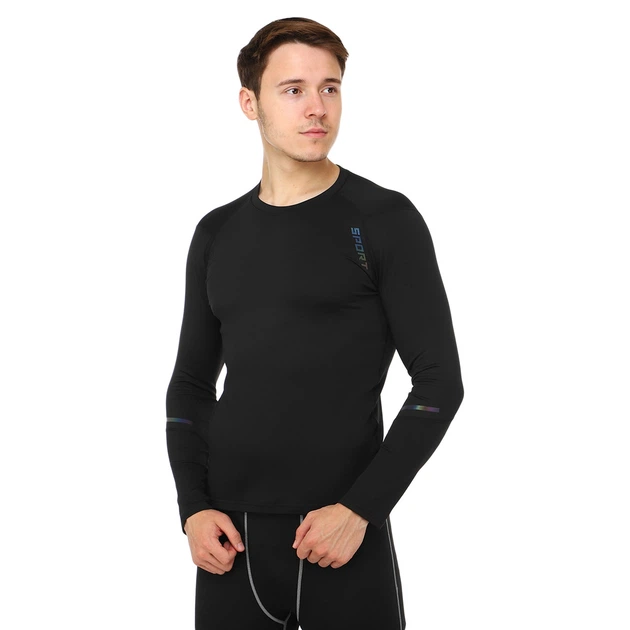 Футболка чоловіча компресійна з довгим рукавом JASON L-809-1 розмір: XL, зріст 175-180 чорний