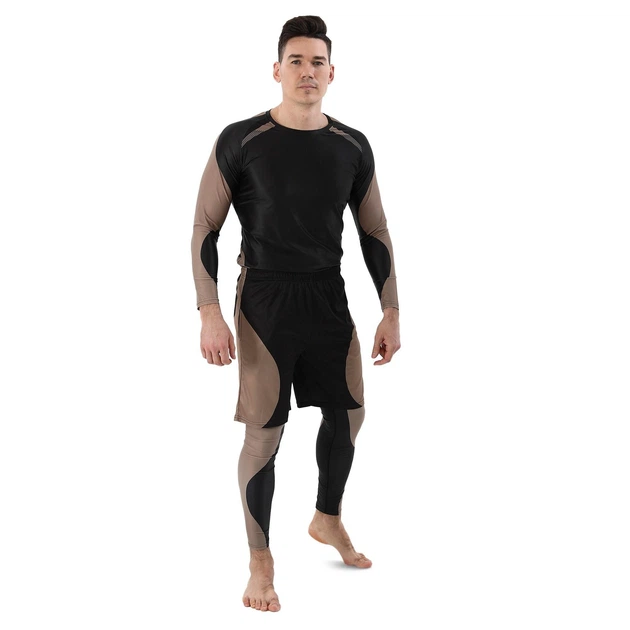 Костюм компресійний чоловічий рашгард лонгслів штани та шорти Domino TC210-KC210-7-CK210-6 XL Чорний-оливковий