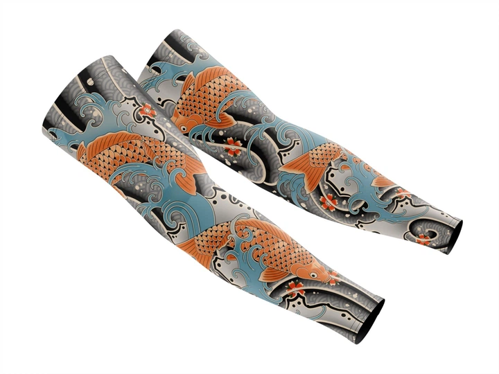 Набір спортивних компресійних рукавів (2шт) Тату-карпи Помаранчеві Selerity Flatlock cc16ko Комбінований S (999798)