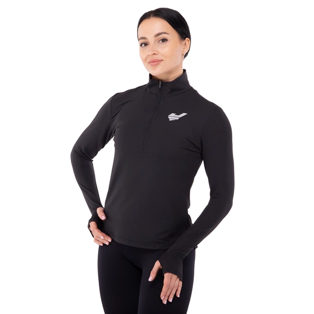 Жіночий лонгслів спортивний жіночий компресійний на блискавці з вирізом для великого пальця JASON LD-36 (поліестер, S, чорни