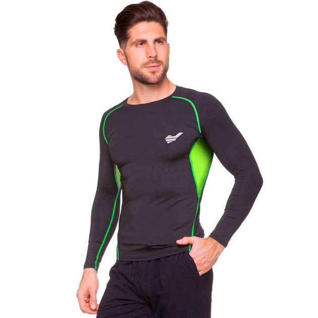 Спортивна чоловіча футболка з довгим рукавом Jason K-704-J розмір XL (175-180 см) Black-Green