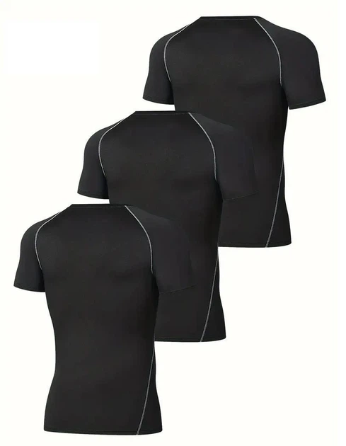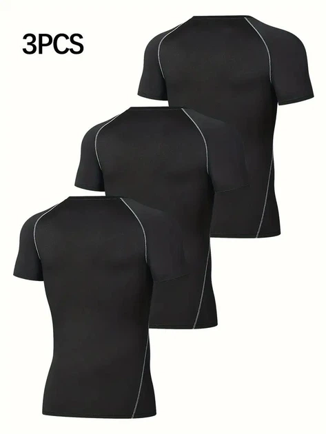 Набір компресійних футболок для тренувань. Колір: Чорний. Комплект 3 штуки. Розмір XL