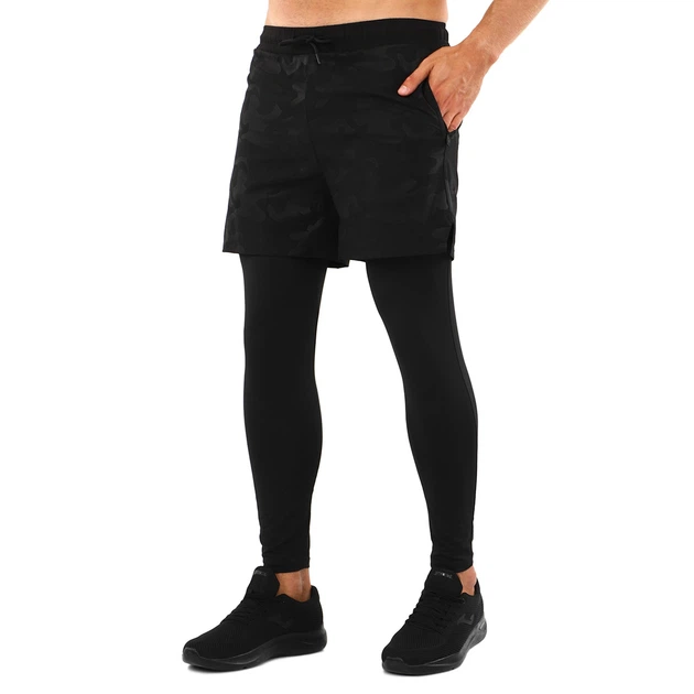 Компресійні штани тайтсі зі шортами 2в1 LIDONG LD-G0137 (поліестер, еластан, XL, Камуфляж чорний)