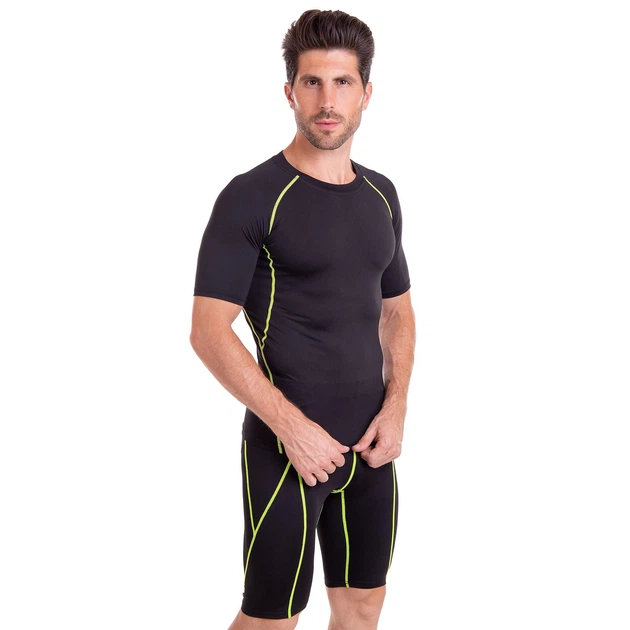 Костюм компресійний чоловічий футболка з коротким рукавом та шорти LIDONG LD-1103-LD-1502 XL Чорний-салатовий