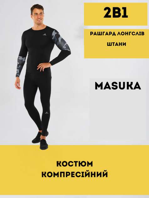 Костюм компресійний чоловічий рашгард лонгслів та штани MASUKA BO-3620 (зріст 175см, р-р XL, чорний-сірий)