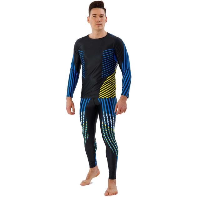 Чоловічий спортивний комплект рашгард + тайтси Domino 210-5 розмір XL (175-180см) Black-Blue-Yellow