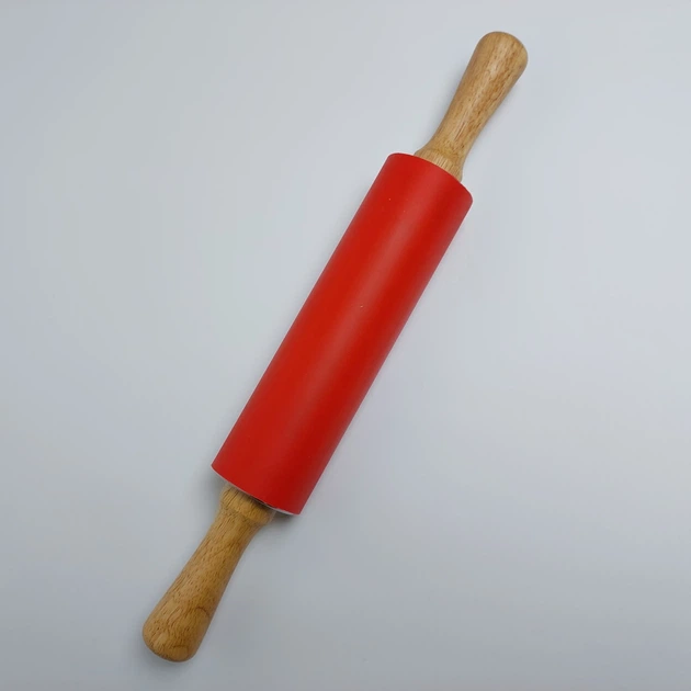 Силіконова качалка для розкочування тіста з дерев'яними ручками 38 см Сіра