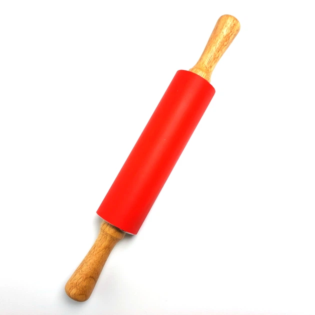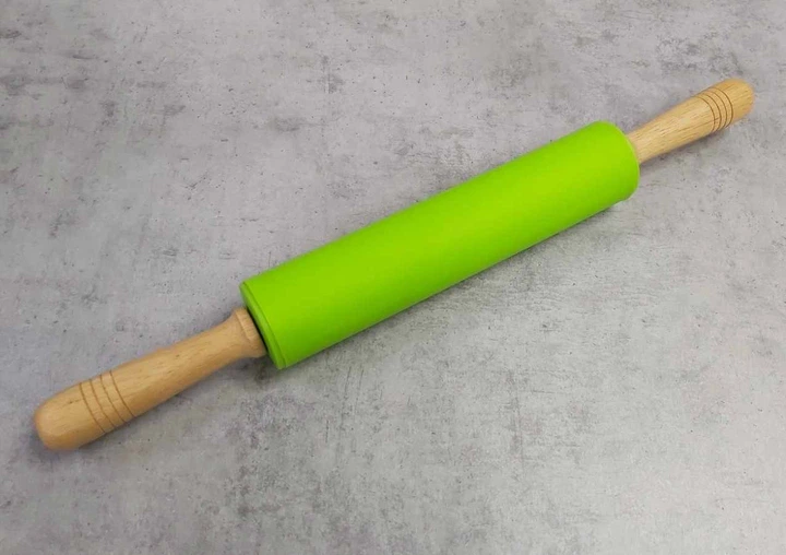 Силіконова качалка для розкочування тіста з дерев'яними ручками 38 см М'ятна