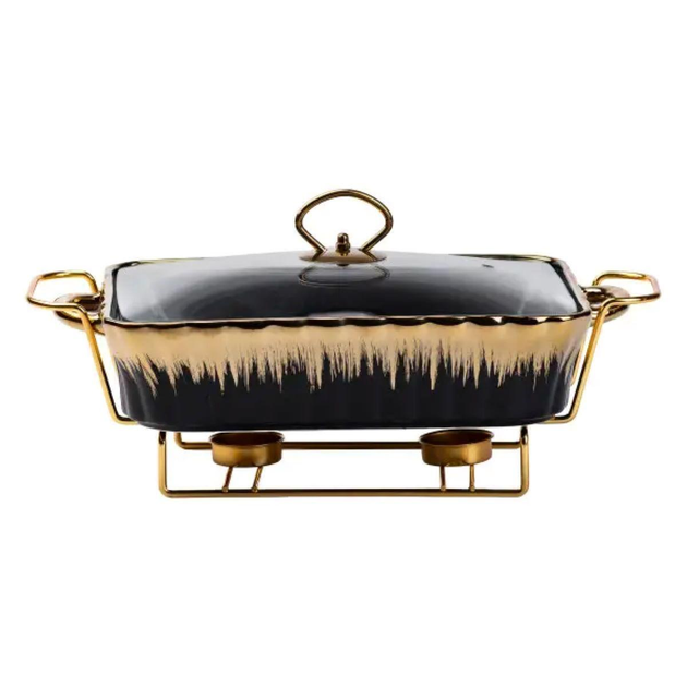 Марміт Yiwu керамічний зі скляною кришкою 35.5х19х15.5 см на металевій підставці 1,5 л Чорний (HTJ-1002)