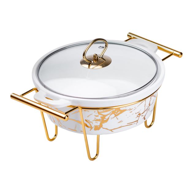 Керамічна овальна мармітниця об'ємом 2 літри на металевій підставці з підігрівом, стильна сервіровка та збереження тепла стр